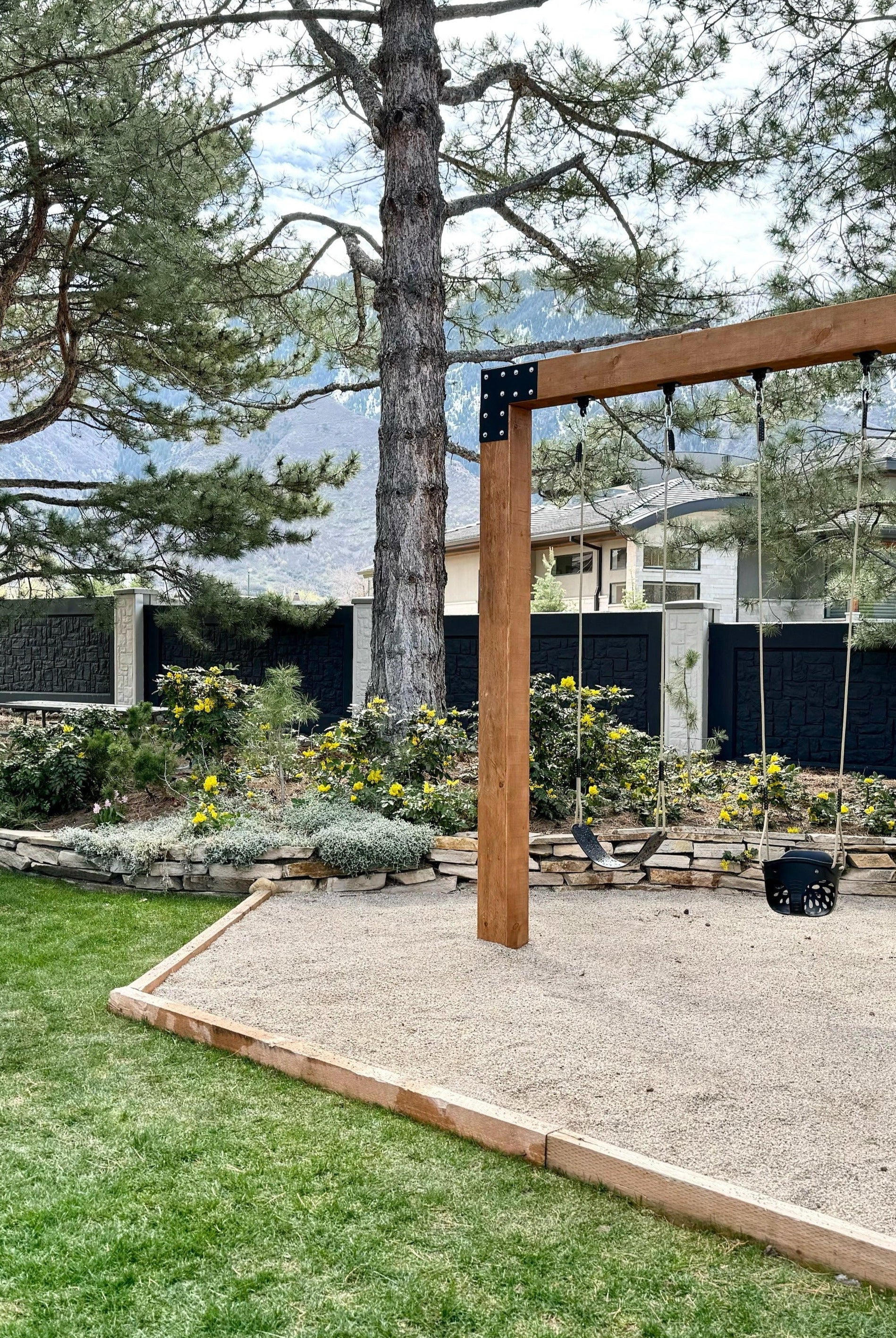 Designed to elevate your outdoor space with its sleek and modern aesthetic, this swing set is crafted with 8-in. x 8-in. in Douglas Fir #1 FOHC (Free of Heart Center) wood, ensuring durability and longevity. The high-quality 12-gauge galvanized steel brackets further increase the sturdiness, promising years of enjoyment for you and your loved ones.